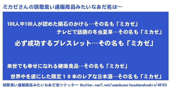 | ヒーロー風カッコイイあだ名 | 『スーパーミカゼ』『正義の使者ミカゼ』 |