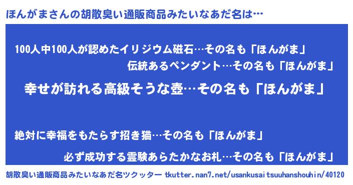 | 伝説のあだ名 | 『秘められし忍者ほんがま』 |
