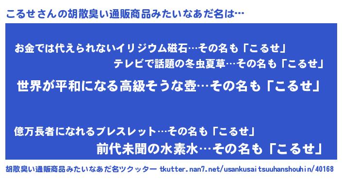 | 意味不明あだ名 | 『こるせフォーエバー』『永久保存こるせ』 |