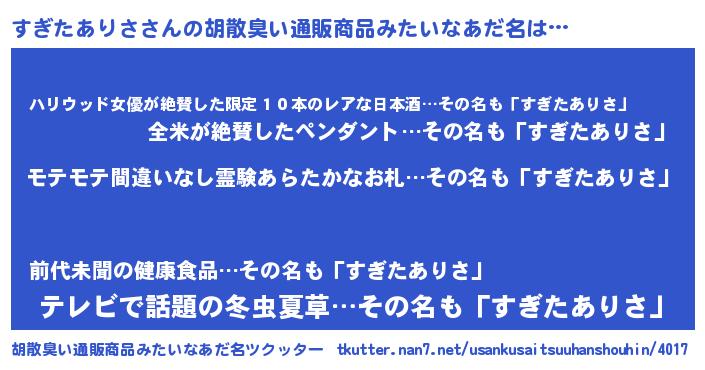 | 欧米人風あだ名 | 『マイケルすぎたありさ』 |
