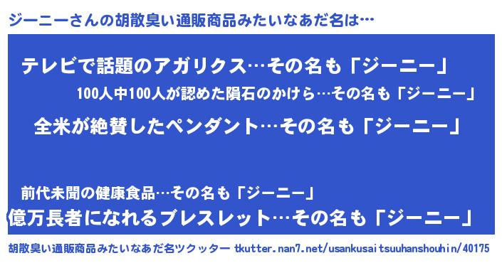 | 意味不明あだ名 | 『とにかく怪しいジーニー』 |