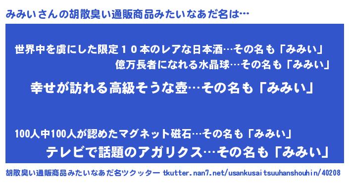 | 意味不明あだ名 | 『みみいフォーエバー』『自称みみい』 |
