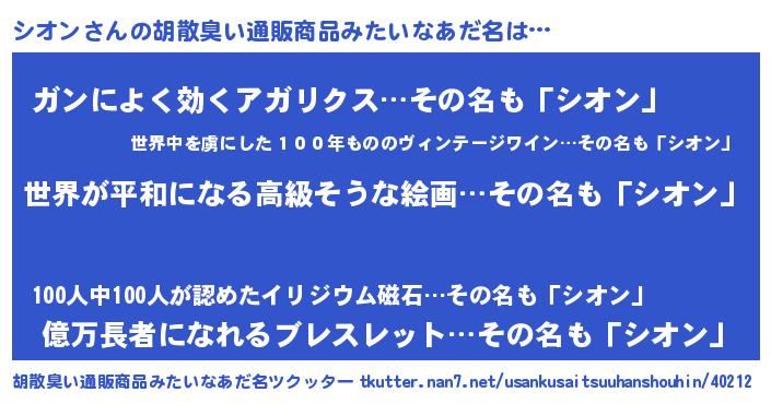 | 意味不明あだ名 | 『シオンフォーエバー』『自称シオン』 |