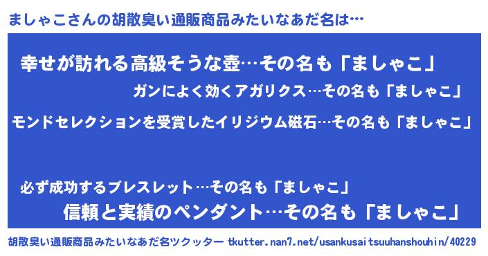 | 男性向けラノベタイトル風あだ名 | 『ノーゲーム・ノーマシャコ』 |