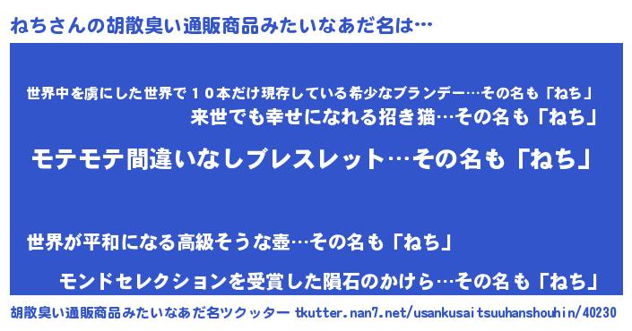 | 意味不明あだ名 | 『ペロリンねち』『住所不定無職ねち(93歳)』 |