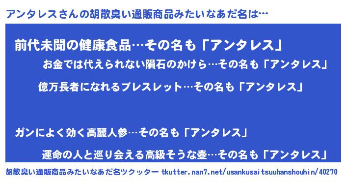 | ヘコむあだ名 | 『アンにー』『アンタレス(震え声)』 |