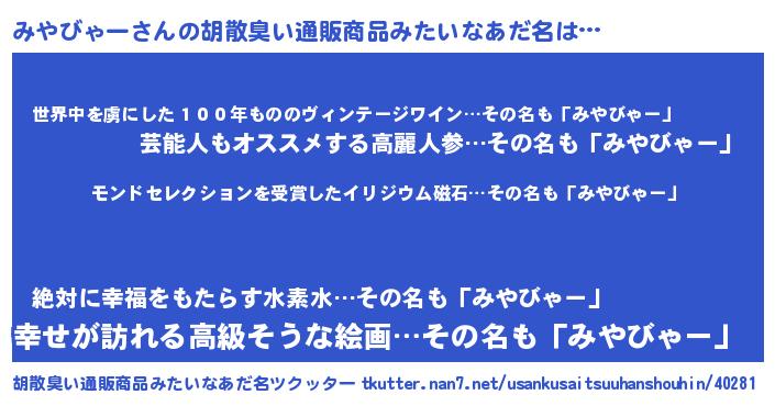 | ヘコむあだ名 | 『レバニラ』『みやびゃー(笑)』 |