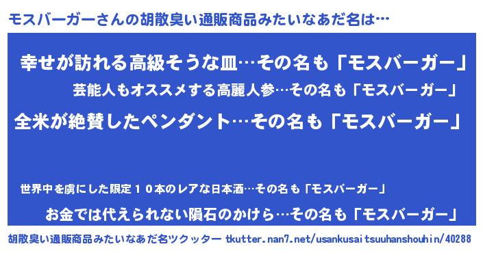 | 意味不明あだ名 | 『とにかく怪しいモスバーガー』 |