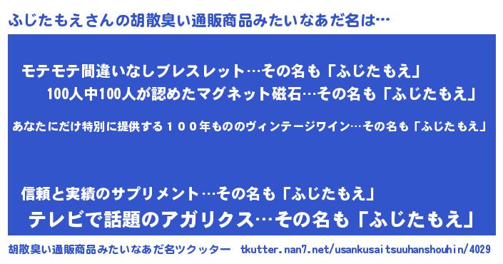 | 欧米人風あだ名 | 『ダレノガレふじたもえ』 |
