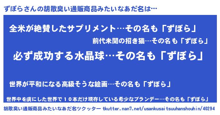 | ヒーロー風カッコイイあだ名 | 『スーパーズボラ』『天弓騎士ズボ』 |