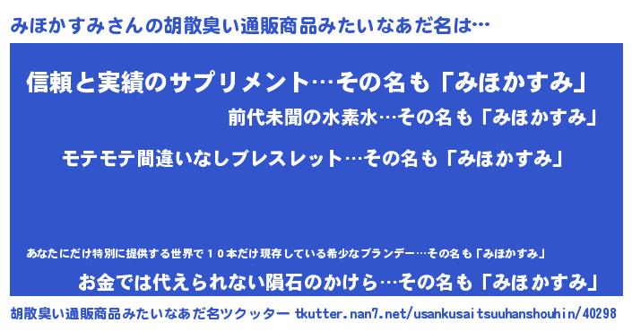 | ヘコむあだ名 | 『みほにー』『みほぷりん』『豆乳』 |