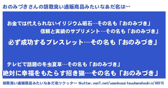 | 男性向けラノベタイトル風あだ名 | 『緋弾のオノミヅキ』『おのみづきの憂鬱』 |