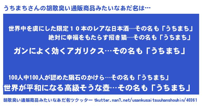 | 肩書あだ名 | 『うちまち総統』『うちまち中尉』 |