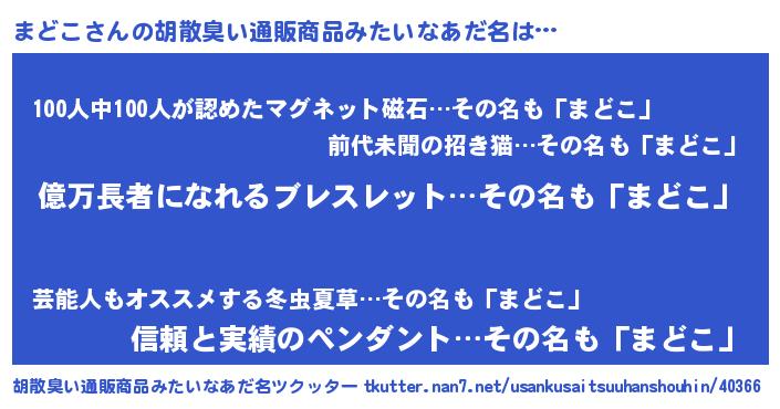 | ヘコむあだ名 | 『まどにー』『まどを』『まどこ(笑)』 |