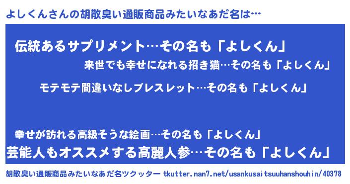 | 意味不明あだ名 | 『ペロリンよしくん』『自称よしくん』 |
