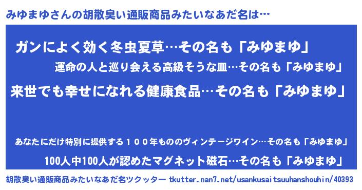 | 意味不明あだ名 | 『永久保存みゆまゆ』『自称みゆまゆ』 |