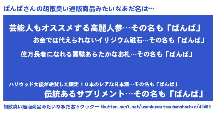 | 意味不明あだ名 | 『ペロリンばんば』『自称ばんば』 |