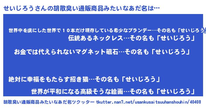 | 意味不明あだ名 | 『眠気覚ましガムせいじろう味』 |