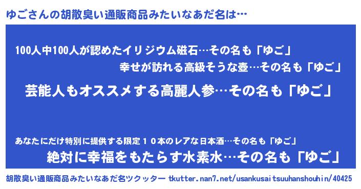 ゆごさんの胡散臭い通販商品みたいなあだ名をツクッター!