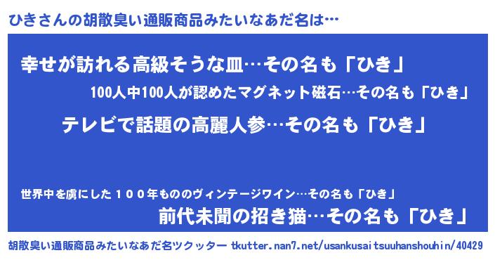 | 意味不明あだ名 | 『自称ひき』『ひきフォーエバー』 |