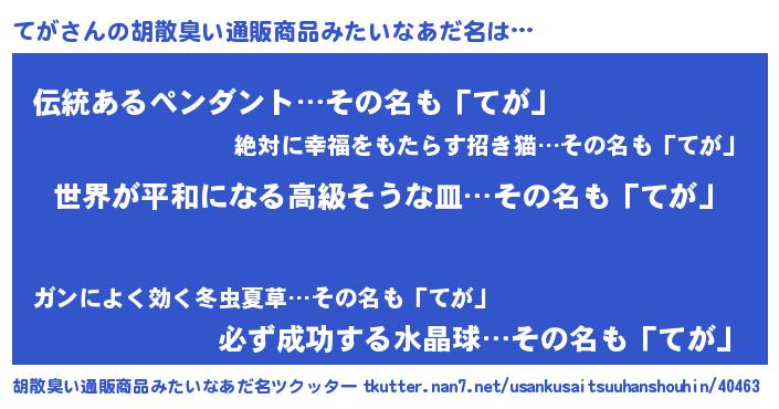 | ヘコむあだ名 | 『なまこ酢』『てがっぺ』『てがもー』 |