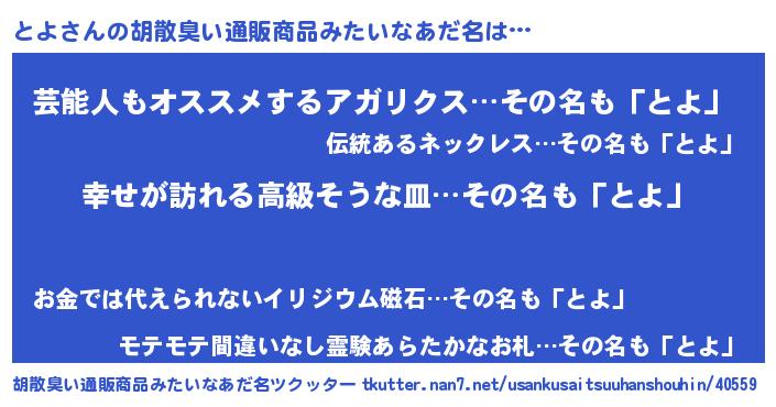 | 意味不明あだ名 | 『とよフォーエバー』『自称とよ』 |