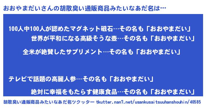 | ヘコむあだ名 | 『おおを』『おおやまだい(笑)』 |