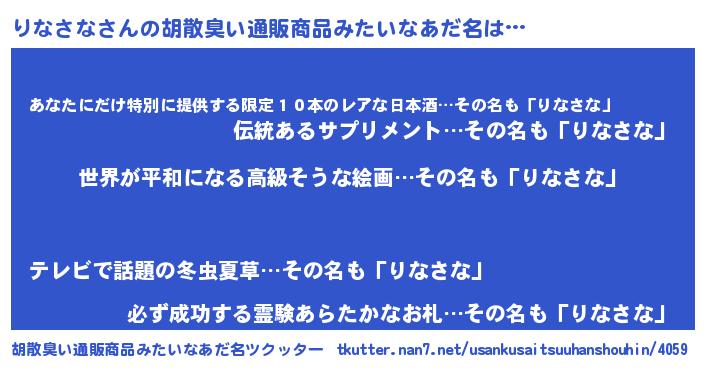 | ヘコむあだ名 | 『なまこ酢』『りなもー』 |