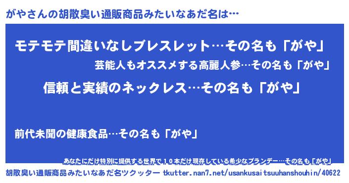 | 自動車の名前っぽいあだ名 | 『ガルトヤパン』『ガヤティマ』 |