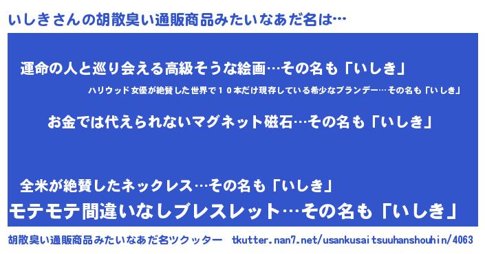 | 欧米人風あだ名 | 『ダニエルいしき』『アンジェラ・いしき』 |