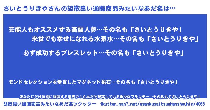 | ヘコむあだ名 | 『さいにー』『さいとうりきや(笑)』 |