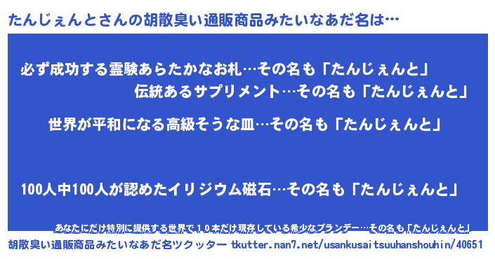 | 男性向けラノベタイトル風あだ名 | 『転生したらたんじぇんとだった件』 |