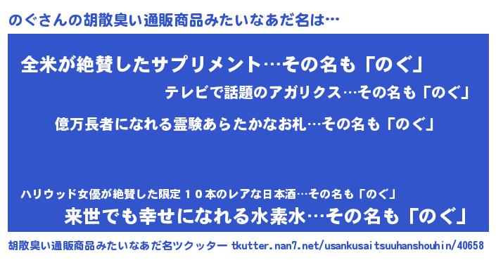 | ヘコむあだ名 | 『のぐっふぃ~』『のぐっちょ』 |