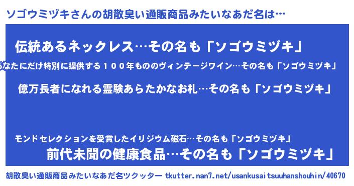| ヒーロー風カッコイイあだ名 | 『スーパーソゴウミヅキ』『幻影騎士ソゴ』 |