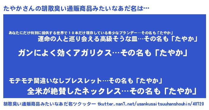 | 肩書あだ名 | 『たやか閣下』『たやかプロデューサー』 |