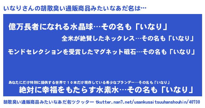 | ヒーロー風カッコイイあだ名 | 『慈愛の使者いなり』『スーパーイナリ』 |