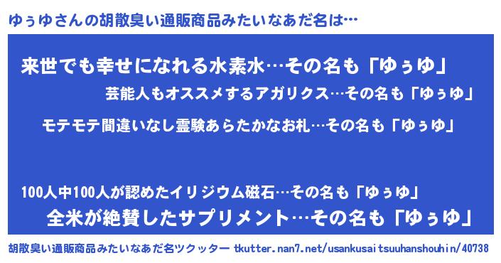 | 肩書あだ名 | 『ゆぅゆ御曹司』『ゆぅゆ上級大将』 |