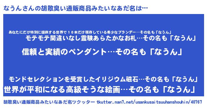| 意味不明あだ名 | 『とにかく怪しいなうん』 |