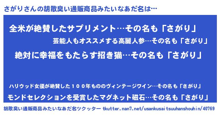 | 意味不明あだ名 | 『永久保存さがり』『自称さがり』 |