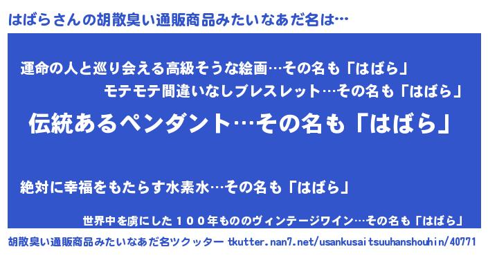 | 意味不明あだ名 | 『とにかく怪しいはばら』 |