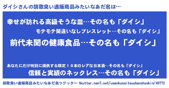 | ヘコむあだ名 | 『ダイシ(笑)』『豆乳』『ダイっ子』 |