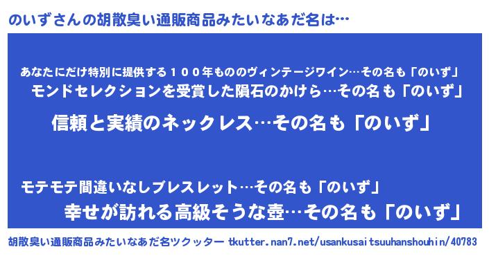 | ヘコむあだ名 | 『のいっ子』『酢こんぶ』『のいもー』 |