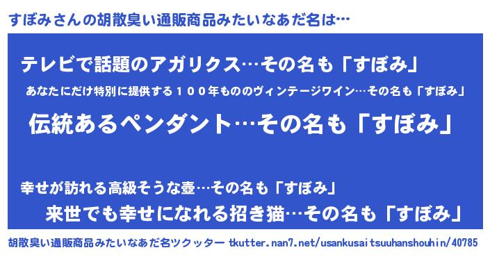 | 意味不明あだ名 | 『とにかく怪しいすぼみ』『自称すぼみ』 |