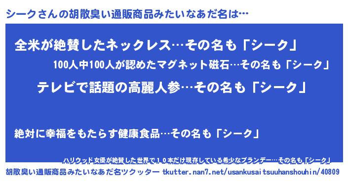 | 意味不明あだ名 | 『自称シーク』『エリンギ科シーク属』 |