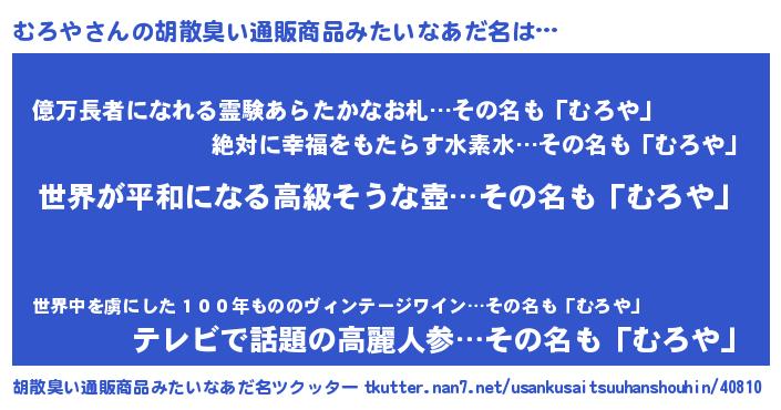 | 男性向けラノベタイトル風あだ名 | 『やはりむろやの青春ラブコメはまちがっている 』 |