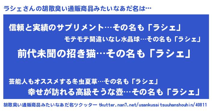 | 意味不明あだ名 | 『永久保存ラシェ』『ラシェフォーエバー』 |