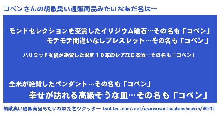 | ヒーロー風カッコイイあだ名 | 『仮面コペダー』『天空の使者コペン』 |