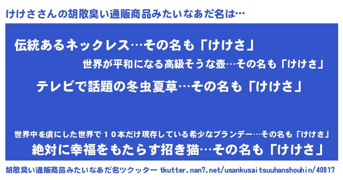 | 意味不明あだ名 | 『自称けけさ』『とにかく怪しいけけさ』 |