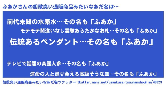 | 意味不明あだ名 | 『とにかく怪しいふあか』『自称ふあか』 |