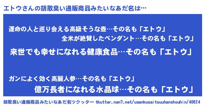 | ヘコむあだ名 | 『エトウ(笑)』『なまこ酢』 |